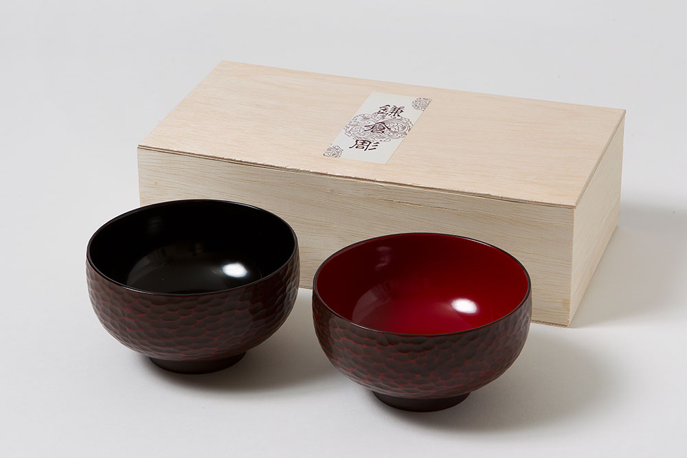 一客ずつではなく、お二つが揃って一つの「夫婦椀」として、立派な桐の箱に収められているのも、新たなスタートを切るお二人にふさわしい点です。ご結婚祝いの贈り物としても、大変お喜びいただいております。