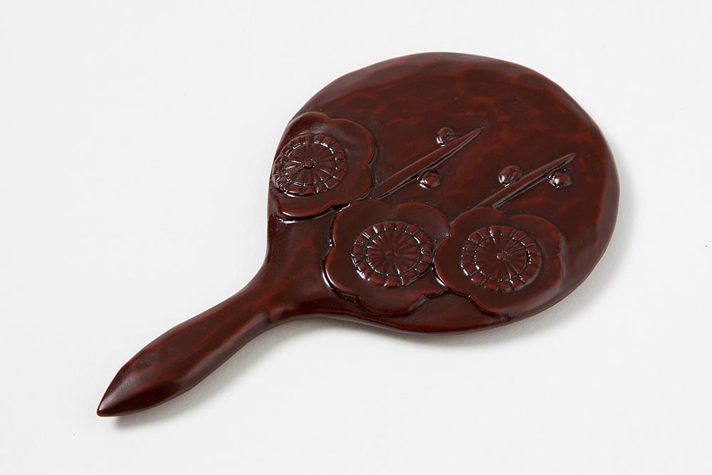 女性の手のひらにすっと馴染む、小ぶりで愛らしい「姫鏡」でございます。意匠として彫り込まれているのは、厳しい寒さを乗り越えて百花に先駆けて美しい花を咲かせる「梅」の文様です。梅は古くから忍耐力や生命力、そして気高さの象徴とされてきました。 外出先でのお化粧直しやふとした瞬間に取り出す手鏡に、上質な鎌倉彫の艶めきがあればお母様の所作はより一層優雅なものとなるでしょう。毎日のようにお使いいただく鏡だからこそ、手にするたびに贈り主であるご家族の温かい想いを感じていただける一品でございます。